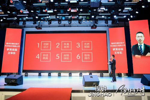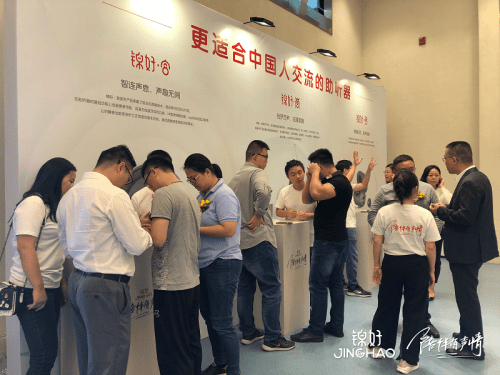 在绚丽的沉浸式灯光下,锦好医疗销售代表携带锦好·宫JH-W2新品登场亮相,产品包装、外观造型均为首次展示在公开场合,一轮夺目的产品走秀让在场的人彻底感受到锦好·宫JH-W2产品设计的精美,也让人对民族助听器产品的设计水平充满信心。