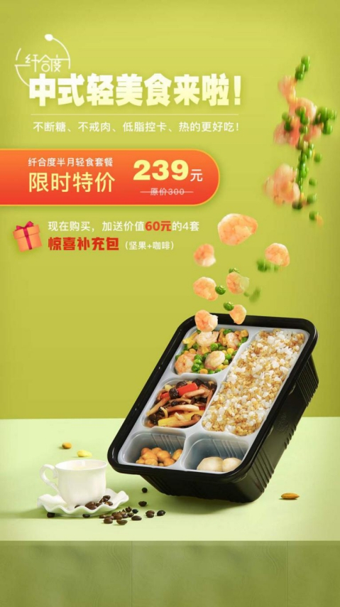 关注30+女性对身心轻盈的需求,让她们在享受美食的同时也能获得更健康的体态,高端中式轻食品牌——纤合度,应运而生。