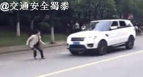 人刚准备躺地上,车灯掉了,车门也掉了……