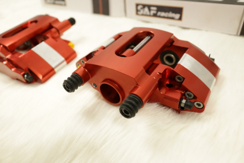 卡钳是汽车刹车系统中最为重要的一部分,中国赛富(SAF)新一代“Galloping”制动卡钳具有设计新颖、重量轻和机电一体化的特点。SAF卡钳有4活塞,不同的活塞能够带来不一样的制动力道以及制动脚感,刚性佳、夹力强、力量平均与反应迅速,采用铝合金材质制造而成的本体,本身也能提供优于原厂铸铁材质的轻量化与散热效果,可有效减少大尺寸碟盘组的重量,并降低刹车油的工作温度,刹车系统自然能提供较为稳定的制动效果。作为中国制动系统领域的标杆品牌,SAF具有时尚的外形和卓越的性能来自创新的设计和机电一体化的运用,它是专为满足极端苛刻而且不断演化的市场需求而设计的产品。