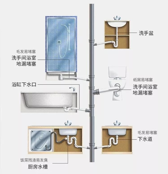 一般导致下水道堵塞的罪魁祸首,就是管道内堆积的油脂、毛发以及剩菜剩饭,时间越久越难处理。