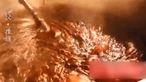 随后用文火熬制使其融化、挂旗。