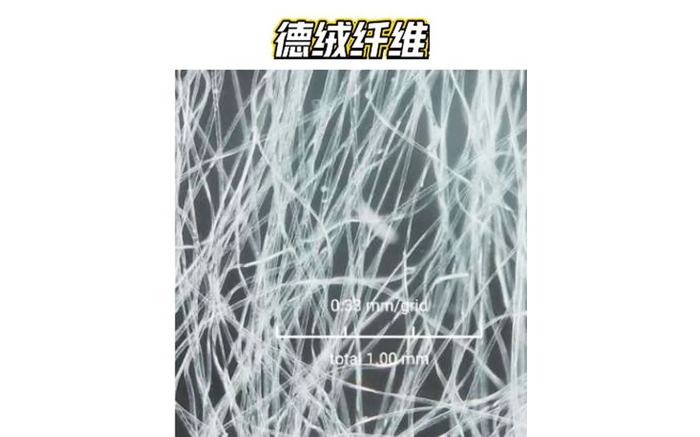 小编特意搞来了显微镜,带大家看清德绒纤维跟普通聚酯纤维的差别:可以看到相同放大倍数下,德绒纤维的粗度差不多只有普通聚酯纤维三分之一!