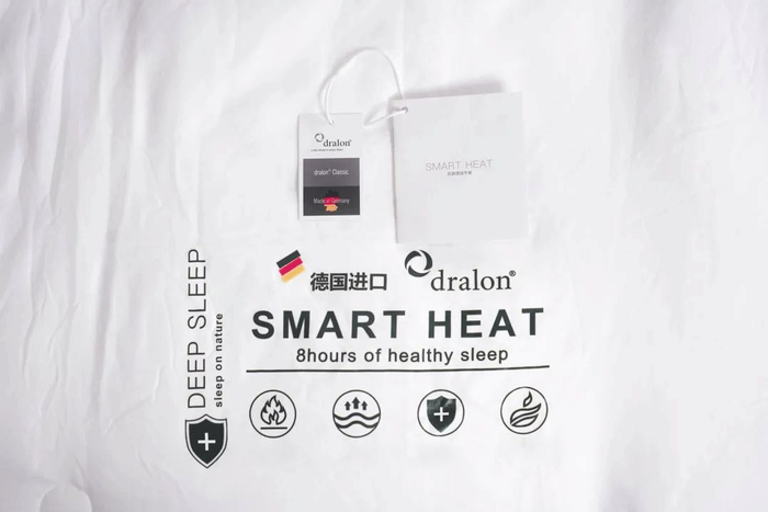 2、科学混纺德绒和聚酯纤维,德绒科技抗寒,保温率高,媲美羽绒被,温暖舒睡一整晚!