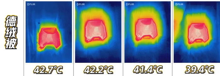 盖被子就害怕冷被窝被子,热不起来,于是我们先测试了德绒被的升温速度,升温越快意味着被子能越快暖和起来。