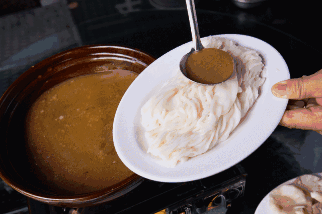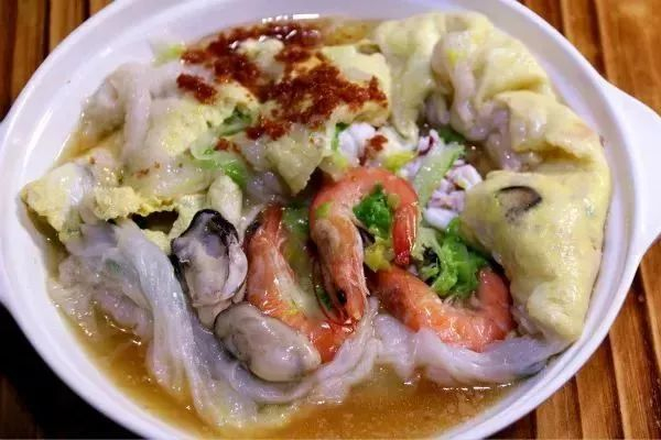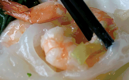 普宁肠粉的汤汁多到甚至可以用勺子舀汤喝,而且大部分普宁肠粉都喜欢加海鲜,其中鲜虾、生蚝最受欢迎。一口下去,满嘴鲜香!