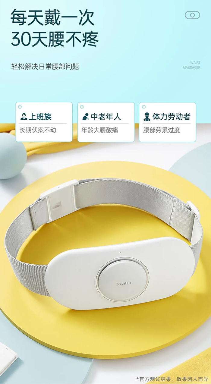 它通过模拟身体在运动时大脑向肌肉神经传递的信号,让肌肉收缩。当把按摩器戴在腰上的时候,咱们腰上的肌肉就会在收缩之间变得更加放松,不再僵硬,身体更加灵活自信~