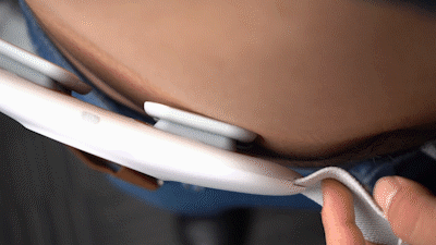 当佩戴到身上的时候,会根据咱们身体的形状左右浮动,更贴合,也就能更好地达到按摩的效果。