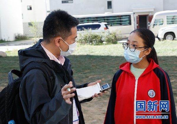 2020年10月14日至10月20日,国新办组织中外记者脱贫攻坚新闻发布与主题采访西藏行活动。16日,记者们抵达位于拉萨市的堆龙德庆区中学采访,了解教育扶贫等情况。