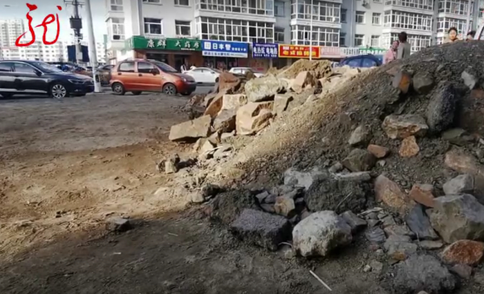 相邻的两个小区,门口的路况却是相差甚远。本来哈尔滨市双城区城管局已经答应居民十月一日之前把道给修好,但居民们不同意他们拿灰焦料垫道之后,就没有人再来给修路了,那些大石块和碎砖头也一直被扔在了现场,至今无人问津。