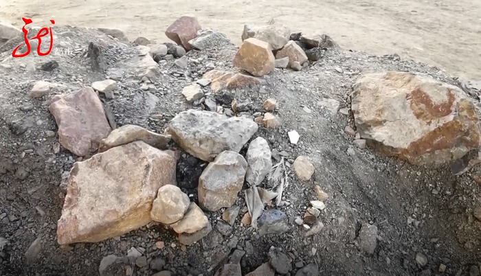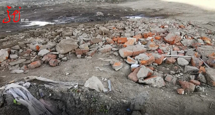 这块以前是存水的坑,走不了人,这帮人整一车这是大石头扔这儿了,这能走人吗?车都过不来,还走啥人啊。