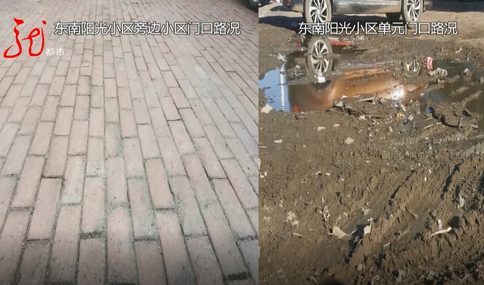你看看我们左手边小区的道特别干净,瞅瞅我们这头,坑坑洼洼的,我们没有什么诉求,只希望政府把我们道能跟这边小区修的一样就行。