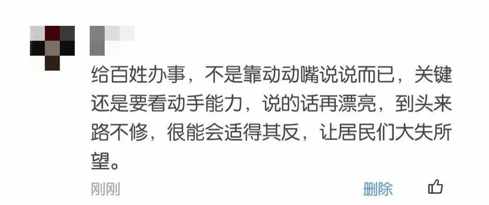 政府官员说话应当算数,别失信于民,二十天之内修完,现在过了几个二十天了,我们心里非常不满意。