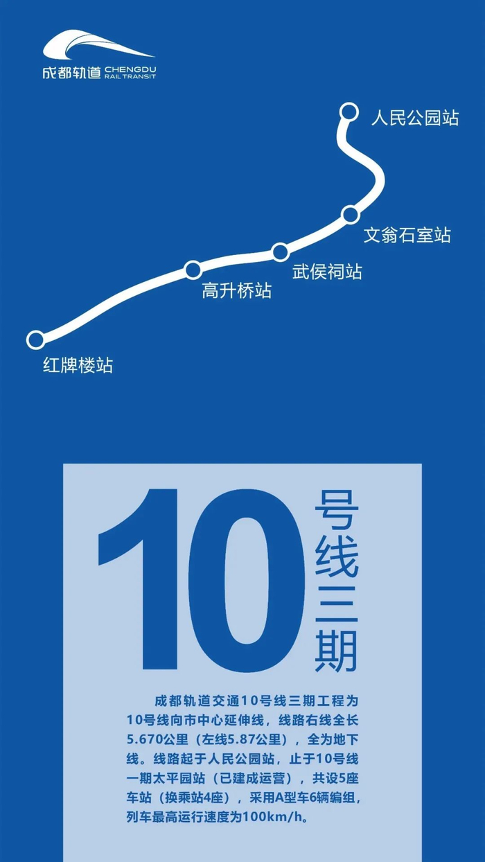 最新进展:全线5个车站已全部打围,正在开展绿化迁移及管线迁改等前期工作,其中2个车站进行围护桩施工。2号线、10号线三期、17号线三线换乘车站——人民公园站已于10月15日首桩开钻。