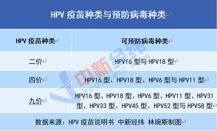 渤海证券研报显示,HPV有100多种亚型,在众多亚型中,HPV16和HPV18是最主要的高危型,约70%的宫颈癌是由这两种亚型引起的,因此最初上市的二价HPV疫苗主要预防这两种亚型。