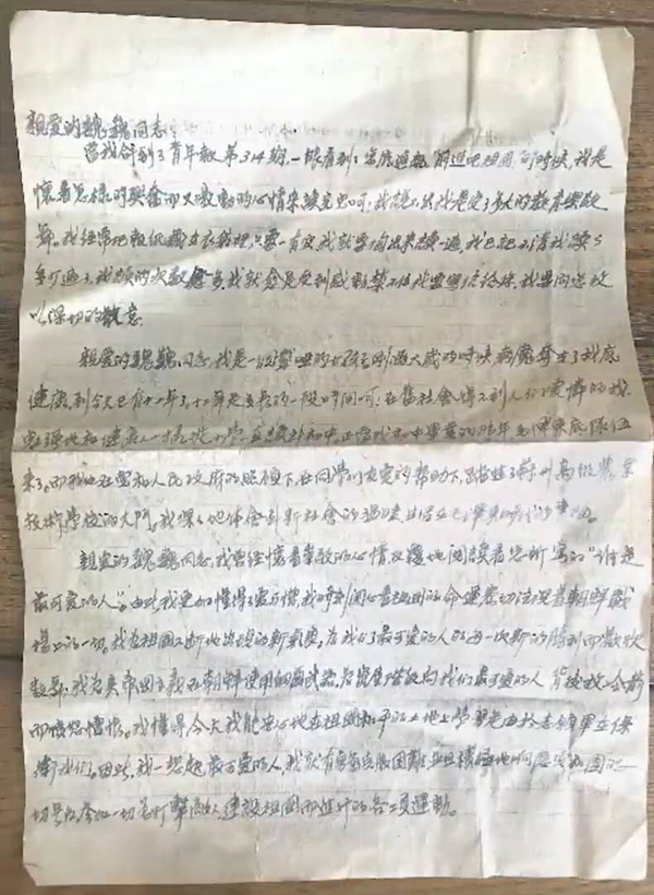 魏巍收到的读者来信。魏平供图