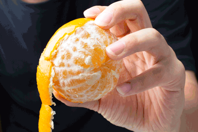 吃橙苦于没有刀具?那就手撕!爱媛橙皮薄易撕,用剥橘子的手法剥去表皮能吃!剥皮时,满手汁水,都全是香甜。