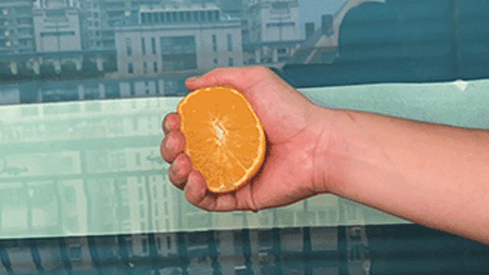 平时还可以直接用它“徒手榨汁”,不需要洪荒之力,只需轻轻一捏,随时随地都能来一杯无添加、天然的橙汁,连榨汁机都省了。