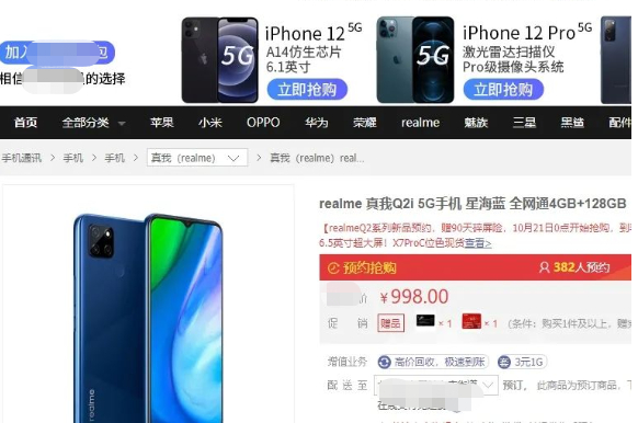 就在近日,OPPO系的realme发布了真我Q2i这款5G手机,其最低售价仅为998元。换言之,一块iPhone 12屏幕的价格,比2部国产5G手机还要贵153元。