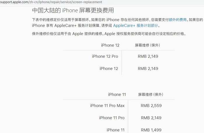 换一个iPhone屏幕已进入到能买2部5G手机的时代。这次苹果公布了新iPhone的屏幕更换费用,对于iPhone 12和iPhone 12 Pro来说,其保外的屏幕维修费用均为2149元。