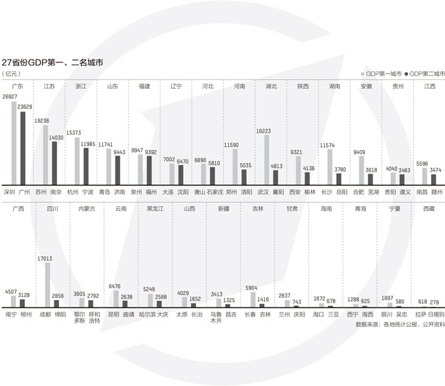 原标题:27省份第一经济大市盘点:7城非省会,8城GDP超万亿