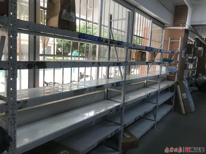 在广西大学西菜鸟驿站,放置百世快递包裹的货架空空的,送件量明显减少