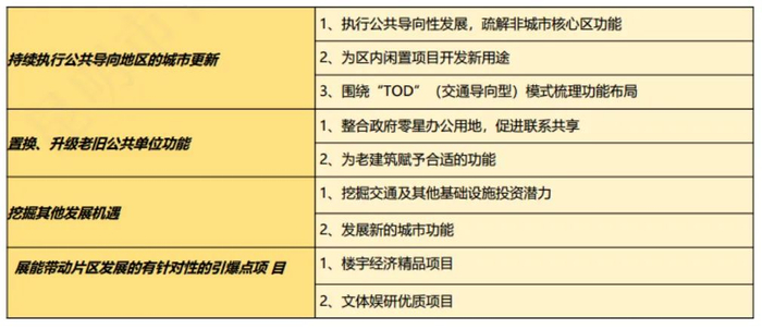 疏解非中心城市功能,用地强化商业商务及公共功能,业态强化现代服务业。结合旧区城市更新,分类引导土地使用功能;对接建设区域性国际中心城市目标,强化现代服务业和楼宇经济业态版块。