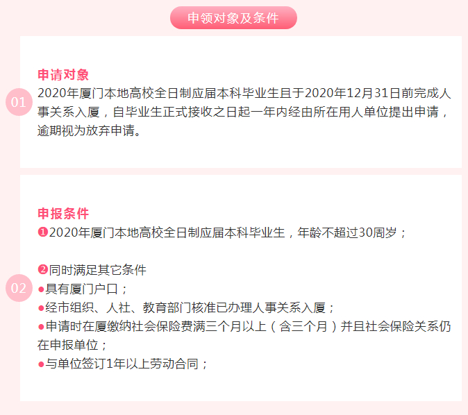 如果是在2020年12月31日前完成人事关系入厦的,应自毕业生正式接收之日起,一年内经由所在用人单位提出申请,逾期将视为放弃申请。