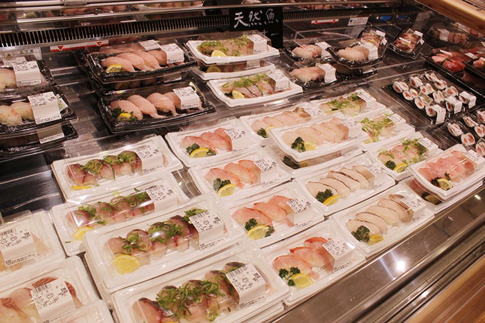 悬挂式的柜子巧妙地隔开了生鲜和日用品两个不同的区域,一切都很自然。