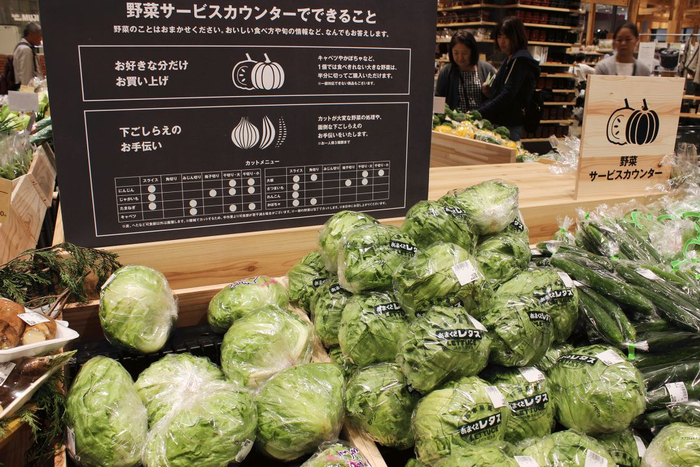 每一样蔬菜都被精心包装好,标上价钱,还提供切丝和切块服务。更有心意的是,MUJI还会标明出产地运输者,甚至是挑选方式和烹饪方式。