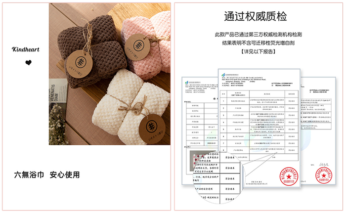 毛巾通过质检标准,纯棉,无甲醛,无异味。