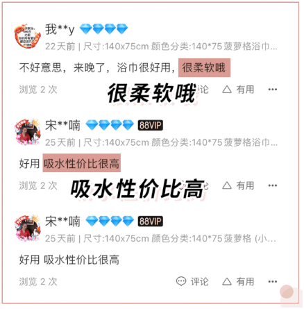 相比同等品质的毛巾,它的性价比真的不错哦,不过是别的款式的2分之一,只需49元/2件套。