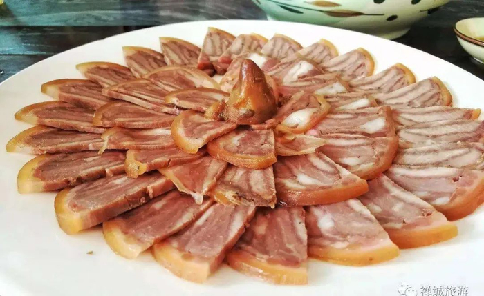酝扎猪蹄制作工艺复杂,有大小工序三十几道,品尝起来“肥而不腻、和味甘香”。由于其风味独特、工艺精细、造型美观,有“卤味之王”之称。