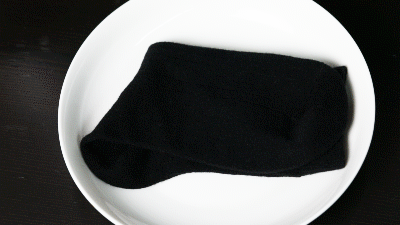 再看,杯子里热水的水雾轻松透过袜子,眼镜一秒上雾,透气性好评!
