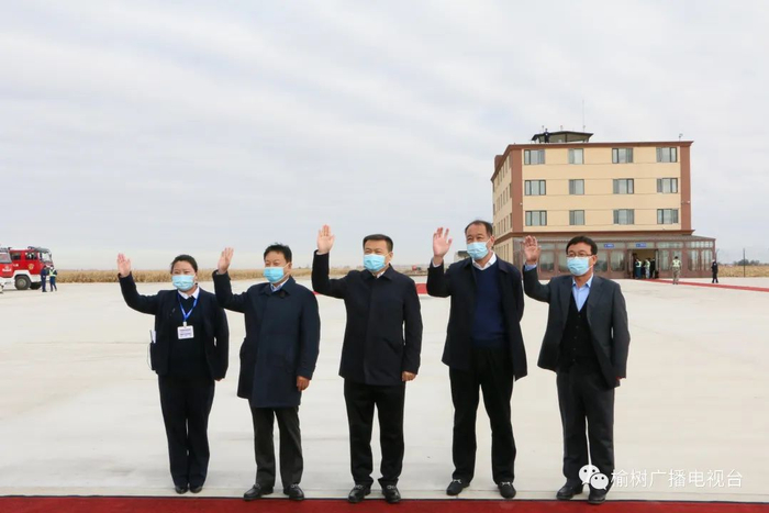 副市长马光辉及相关部门人员在榆树机场1号停机位为首批旅客送行。