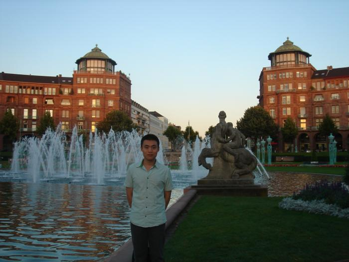 2008年。陶勇摄于德国曼海姆的喷泉广场。出版方供图