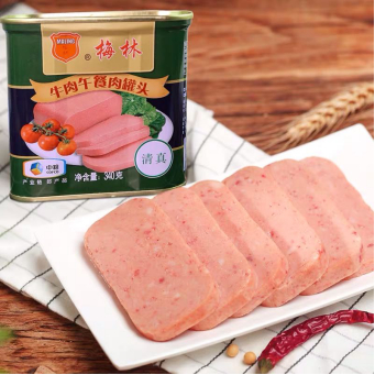 梅林牛肉午餐肉罐头从原料抓起,牛肉均来自国家检验检疫局认证的养殖场,用心饲养好牛,采用纯鲜肉,并非冻肉,保证了肉质的鲜嫩和营养。