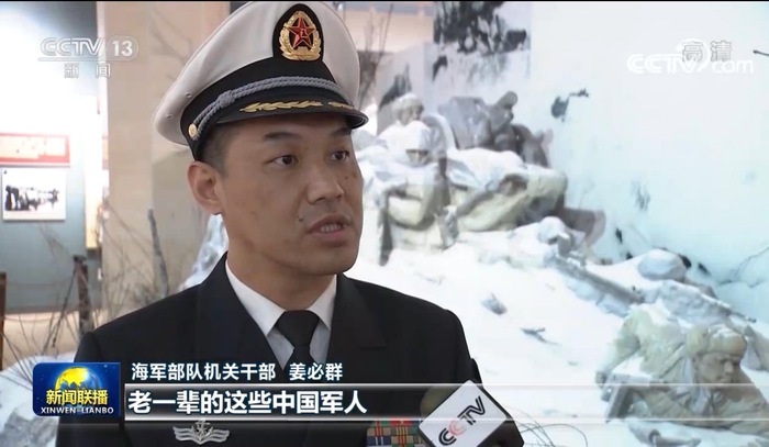 海军部队机关 姜必群:老一辈的这些中国军人,他们身上就是有一种不怕苦、不怕死,勇往直前这种敢于牺牲的一种精神。作为新时代的军人,我们要继承和发扬他们这种精神。