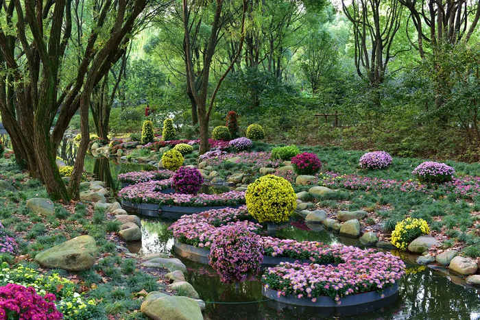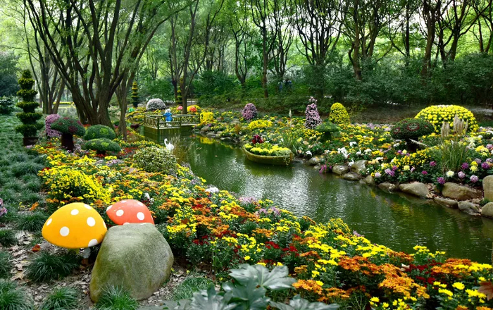 而在香樟广场,展示了来自全国各地的传统独本菊、多头菊、案头菊、切花菊及国内外引进的新奇特小菊等近四百个品种。大立菊、悬崖菊、塔菊、盆景菊及创意仿生菊等菊花,则点缀着林下。备受市民关注和喜爱的中国十大名菊、七彩菊及部分精品菊花品种等也已组成了“菊花盛宴”,静静等待着游人。