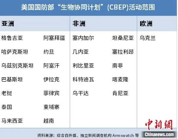 美国国防部“生物协同计划”(CBEP)活动范围。图源:中新网