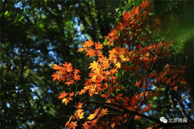 北京植物园第28届市花展仍在进行当中,园内金枝国槐、茶条槭、密冠卫矛等彩叶树种斑斓多彩,与湖光山色相映尽显秋日丽色。