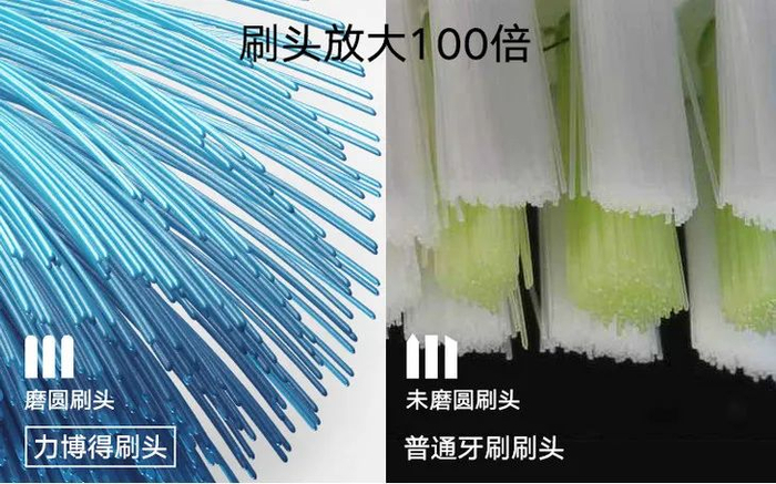 ▲ 普通牙刷一分钟 VS力博得一分钟