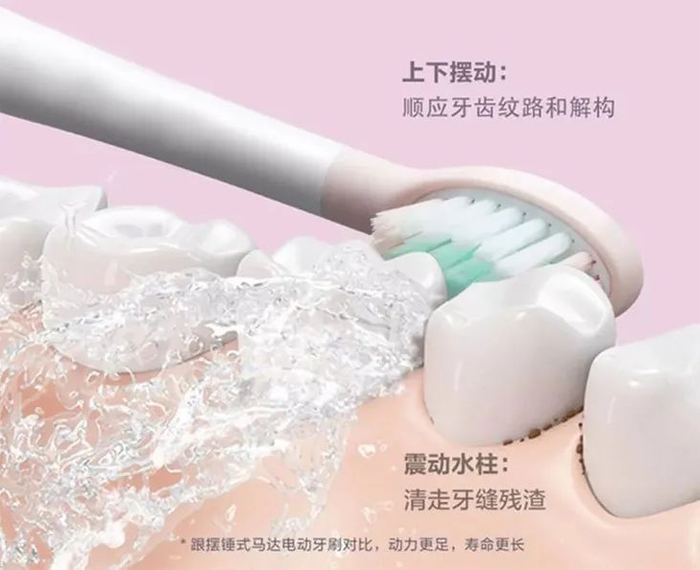它比起普通的电动牙刷、手动牙刷,上下摆动更顺应牙齿纹路和结构,整个口腔都照顾到位了。