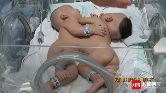 十年前,四川大学华西医院收治了一对连体双胞胎。经过检查发现:她们不仅整个胸腹部连在一起,而且体内的肝脏、心脏大血管也连在了一起,是严重的胸腹连体畸形婴儿。