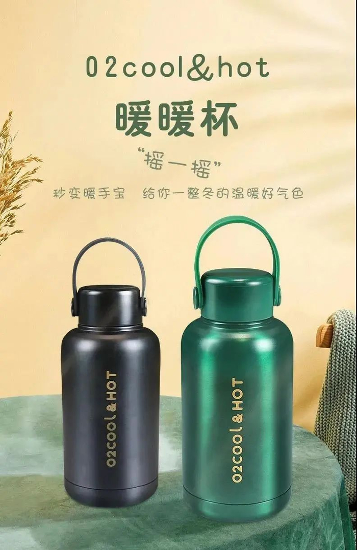 1、能暖手的保温杯!热水保温6小时,一摇变成暖手宝~