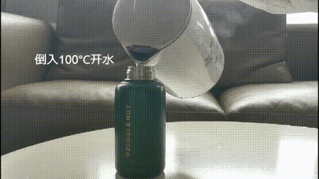 杯子装入热水后倒置摇一摇,导热介质被激发后,将热量传导到外层,杯身疾速发热,立马变身暖手宝。
