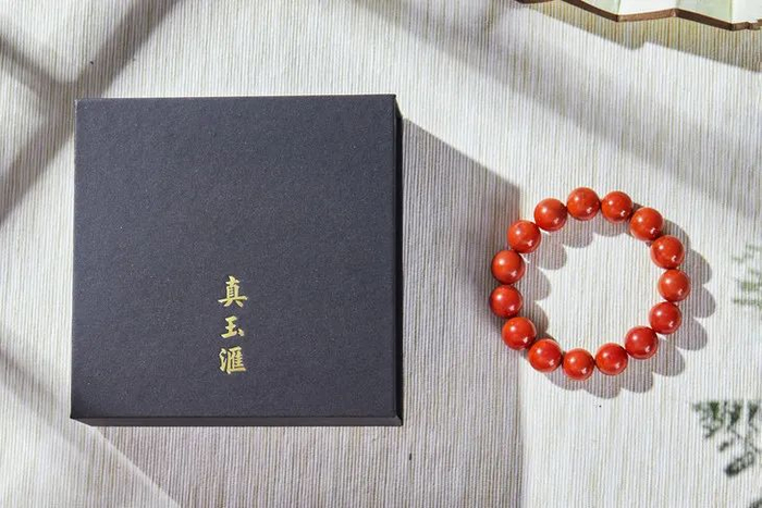 我们这次火焰纹南红手串,便由玉石品牌真玉汇出品,都是南红行家张腾龙早年收藏的珍贵火焰纹南红原料,质量高而价美。