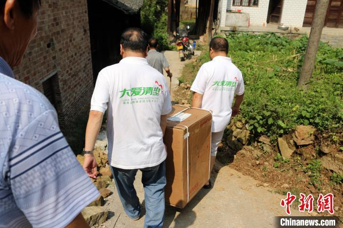 2015年8月21日,大爱清尘公益组织在湖南安化清塘送制氧机。受访者提供