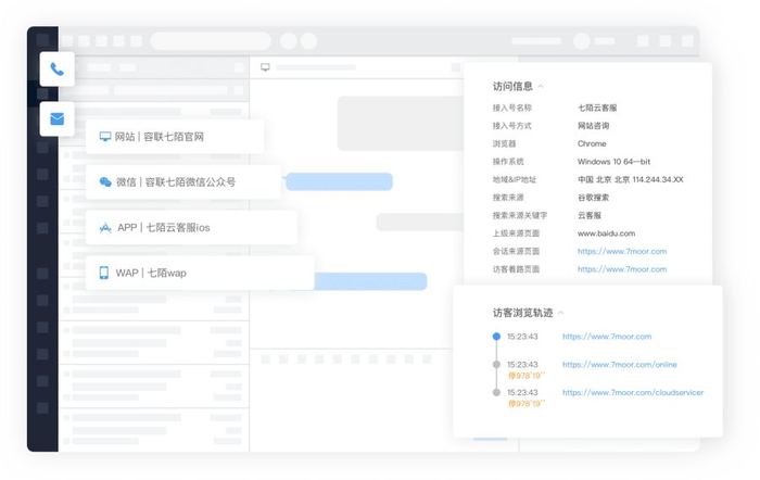 容联七陌云客服可以访问用户来源信息及浏览轨迹,分析用户习惯,帮助品牌更加全面立体地了解用户。客服人员可以添加用户属性标签,定位优质用户,发起主动营销和服务。七陌云客服可以在用户关闭咨询后建立主动会话,通过主动服务为用户推荐合适的商品,让用户自发地去了解并参与到品牌活动中来,有效促进购买率。