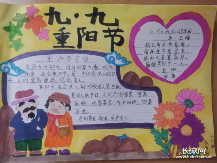 北京师范大学石家庄附属学校的孩子们绘制的“重阳节”手抄报。
